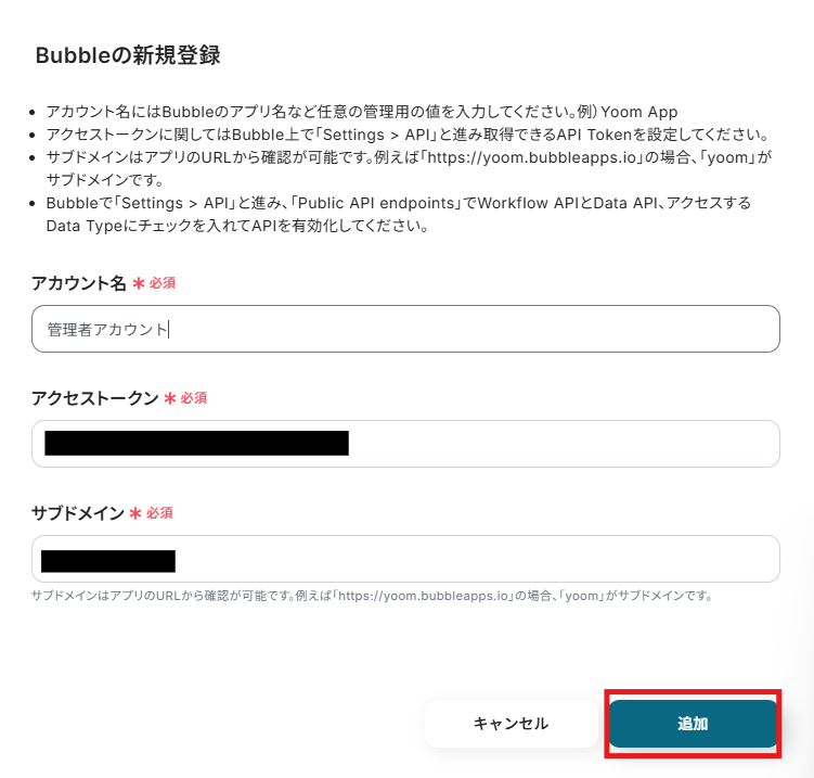 ・Box、BubbleのそれぞれとYoomを連携してください。