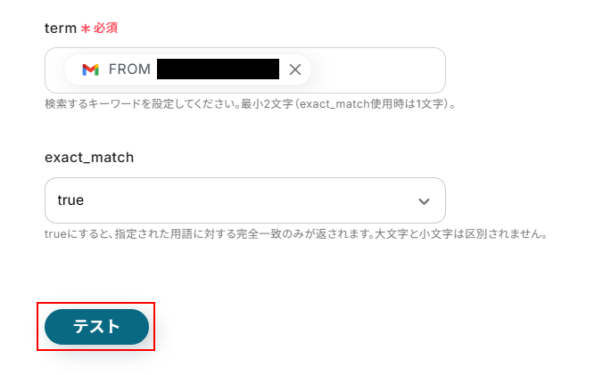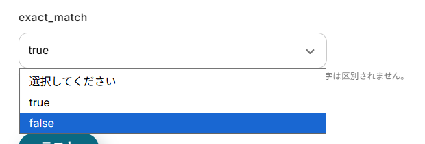 今回はtermに設定した値と完全に一致するものを検索したいため、trueを選択します。