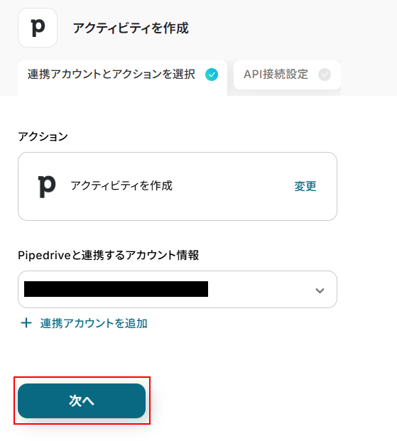 ステップ5:Pipedriveにアクティビティを作成する設定