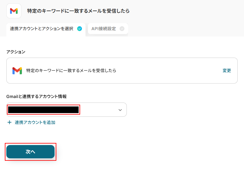 ステップ3:Gmailに特定のキーワードに一致するメールを受信した際の設定