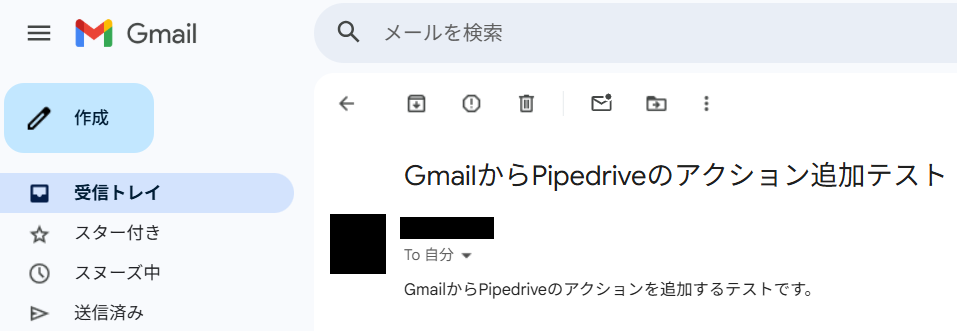 次に、事前準備でPipedriveの人物に登録したメールアドレスから、ステップ1で連携したGmailアカウントにメールを送信します。