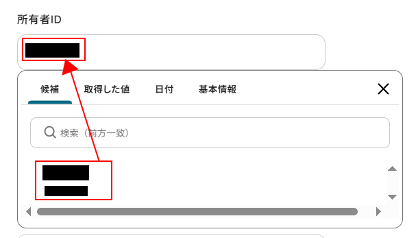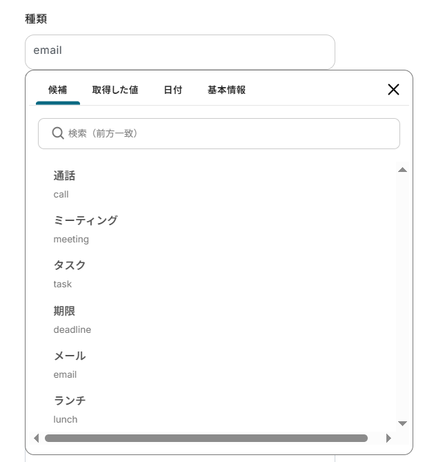 デフォルトで設定されていますが、以下のように入力欄をクリックすることで取得した値から選択することも可能です。