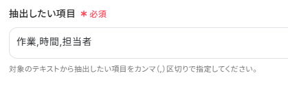 「抽出したい項目」は今回デフォルトの「作業,時間,担当者」にしています。抽出したい内容によって適宜変更してください。