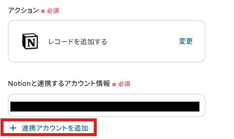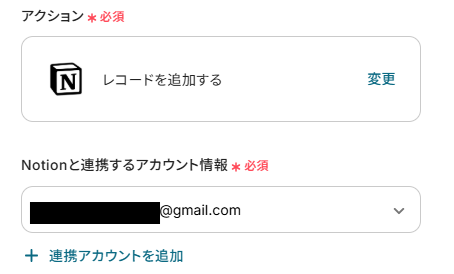 ステップ5:Notionにレコードを追加する 次にNotionにレコードを追加します。「レコードを追加する」をクリックしましょう。