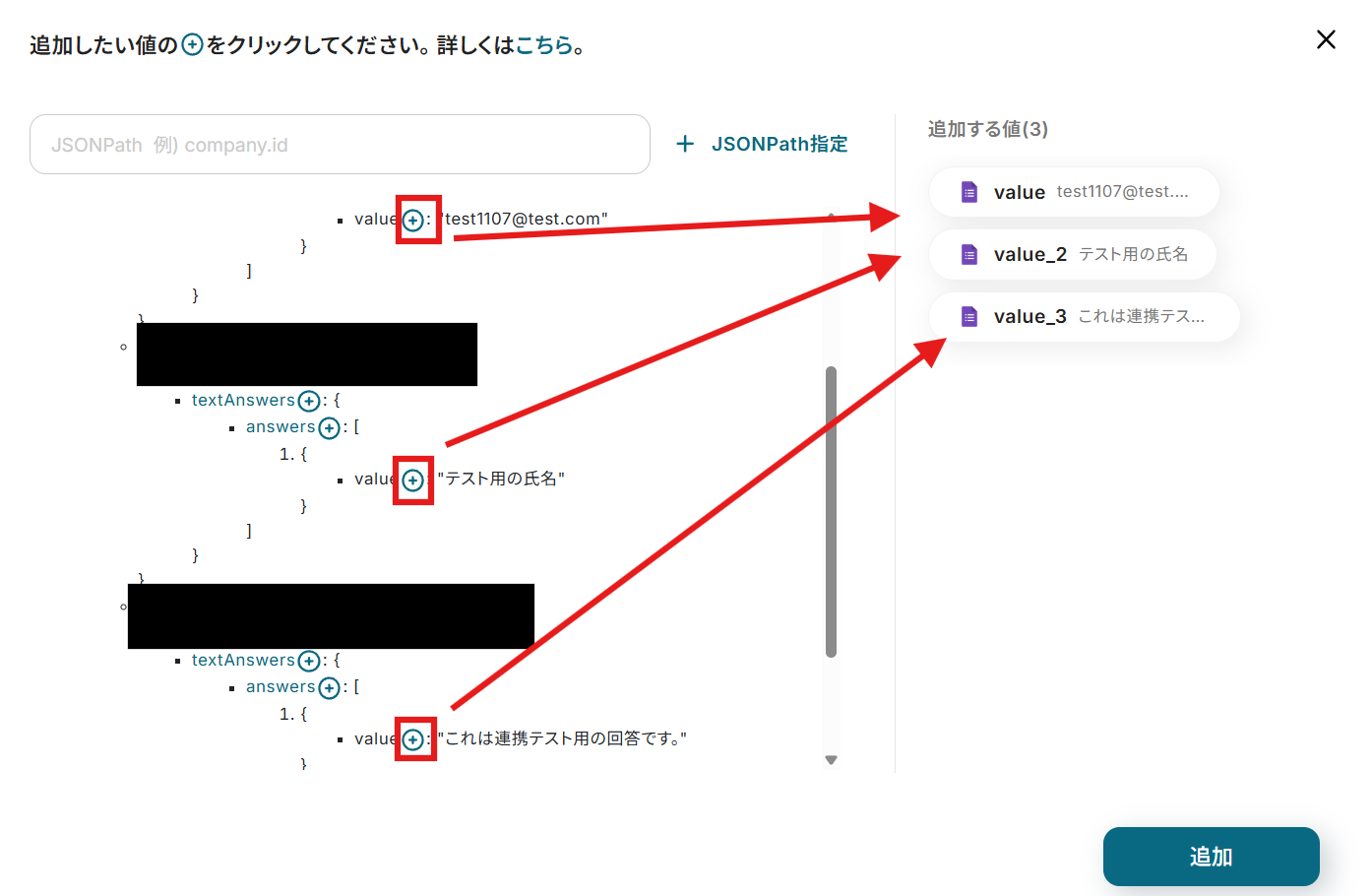 トリガーやオペレーション設定時に、「テスト」を実行して取得した値のことを指します。