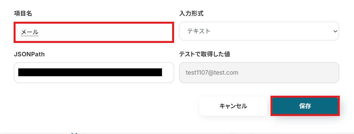 また、アクション設定時の「テスト」ボタンでもエラーがあれば内容が表示されます。