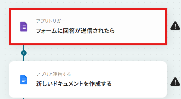 - Googleフォームのトリガー設定とGoogleドキュメントのアクション設定