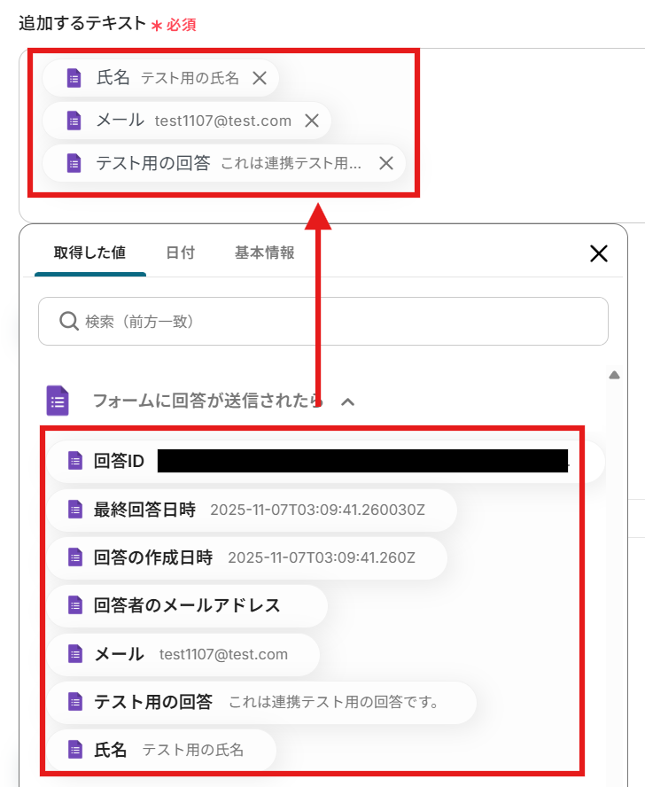 こちらはGoogleフォームの回答から取得した値の中から選びましょう。