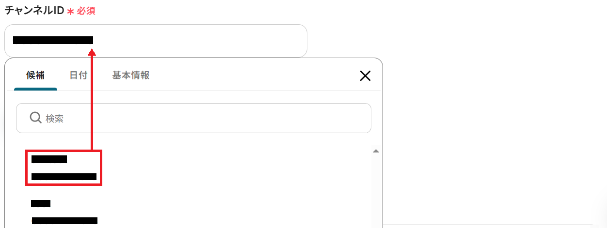 次にチャンネルIDを候補から選択してください。