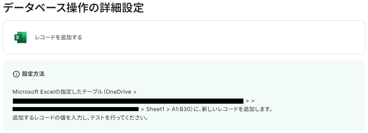 ステップ5:Microsoft Excelのアクション設定