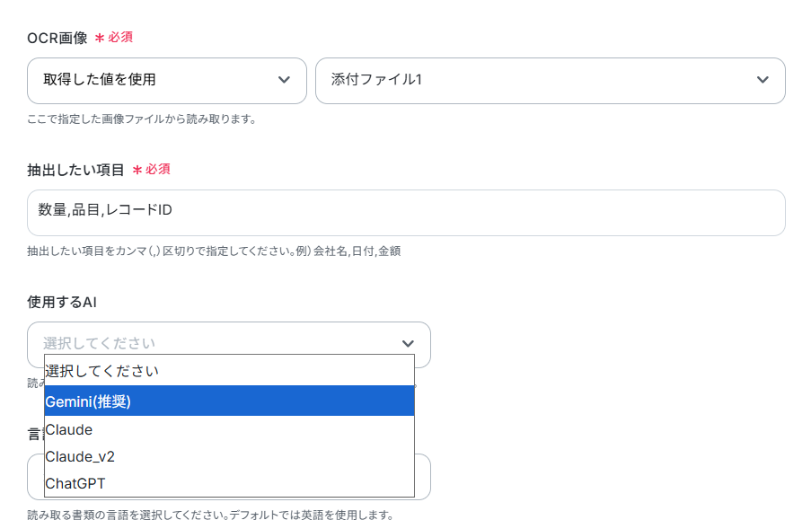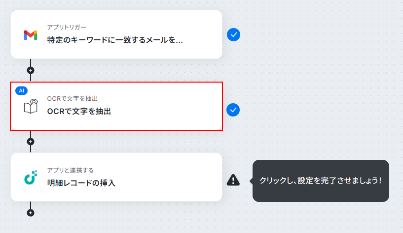 ※OCRや音声を文字起こしするAIオペレーションは、チームプラン・サクセスプラン限定の機能です。フリープランやミニプランでセットするとエラーになってしまうので、ご注意ください。