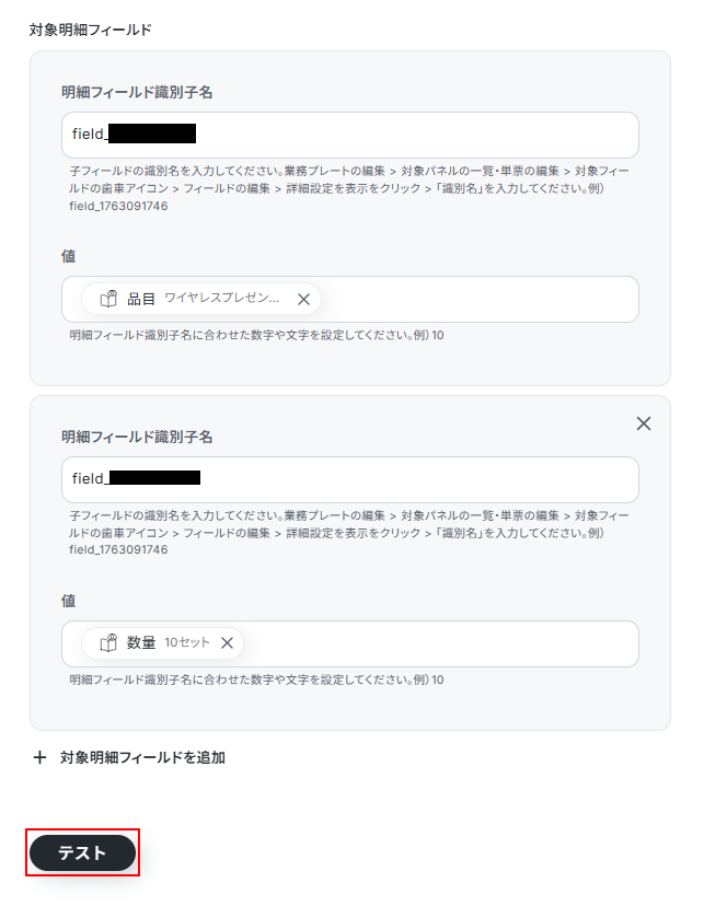 ※今回はPDFファイル内に親レコードID(レコードID)を含むように設定しています。
