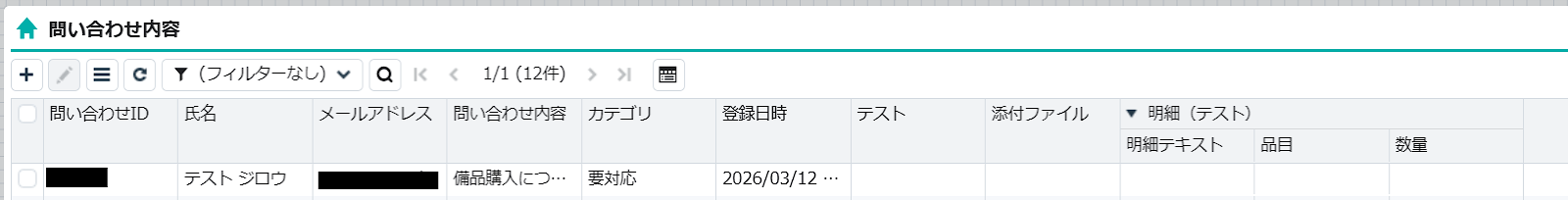 ※レコードを新規作成する際に、デフォルトで明細行に空白が設定されています。