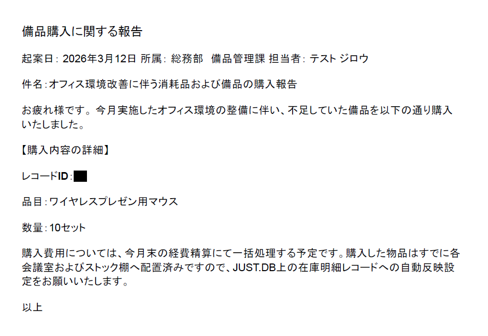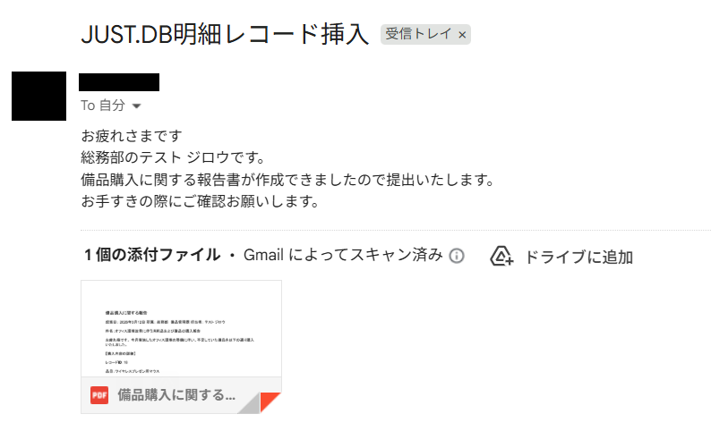 今回ご紹介するテンプレートでは、GmailでPDFファイルを受信したら、OCRで内容を読み取り、結果をJUST.DBの明細レコードに自動で挿入します。