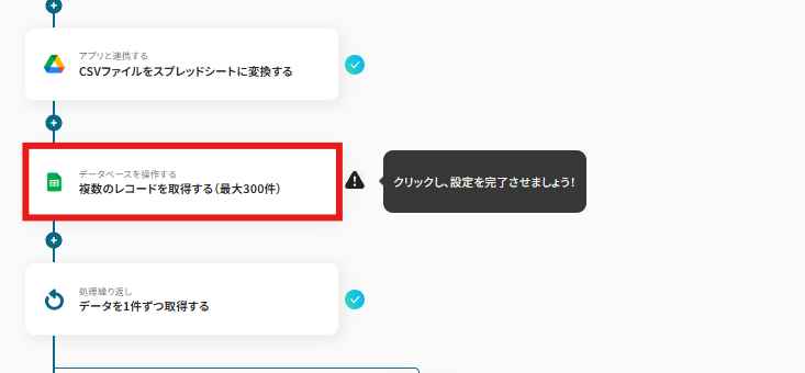 変換したGoogle スプレッドシートからレコード情報を取得するための設定を行います。
