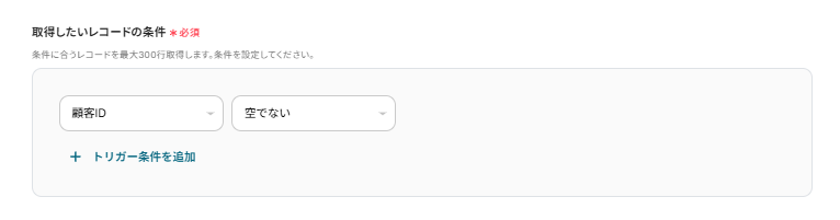 今回は、「顧客ID」が「空ではない」と設定し、顧客IDが入力されている箇所すべてを取得するよう設定しました。
