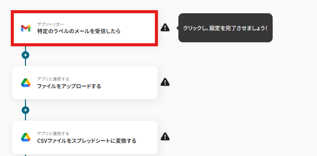 それではここから代表的な例として、Gmailで特定のCSVファイルを受信したら、そのファイル内のデータをGoogle スプレッドシートに自動で複数行挿入するフローを解説していきます!