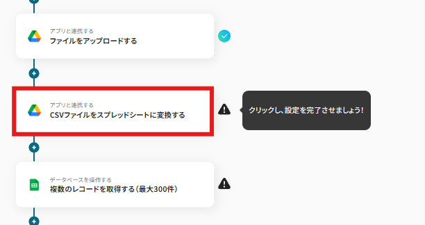 このワークフローを活用すれば、CSVファイル受信時に自動で複数行のデータをGoogle スプレッドシートに挿入でき、効率的かつ正確なデータ管理が実現します。