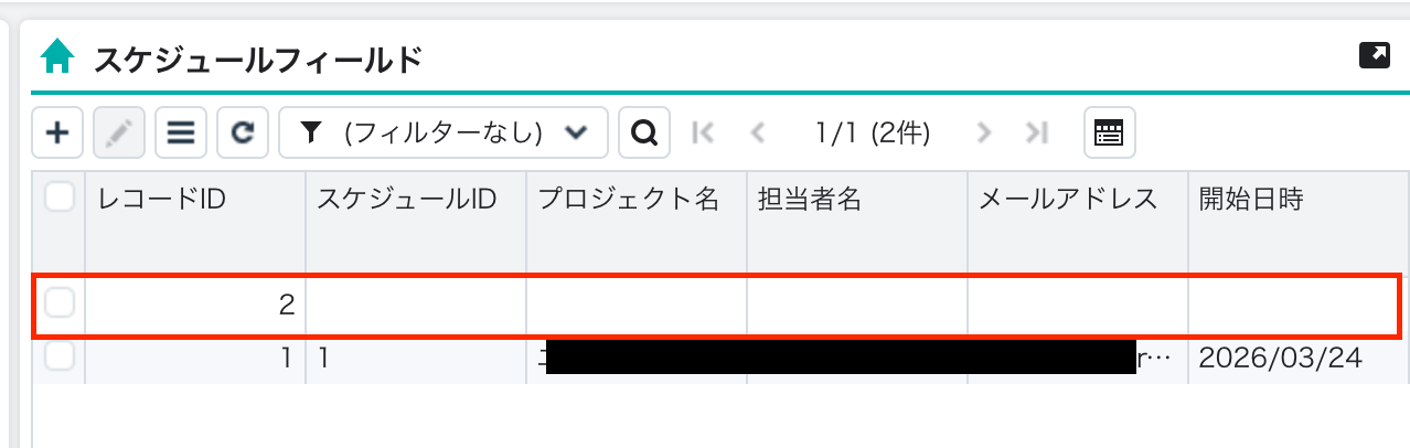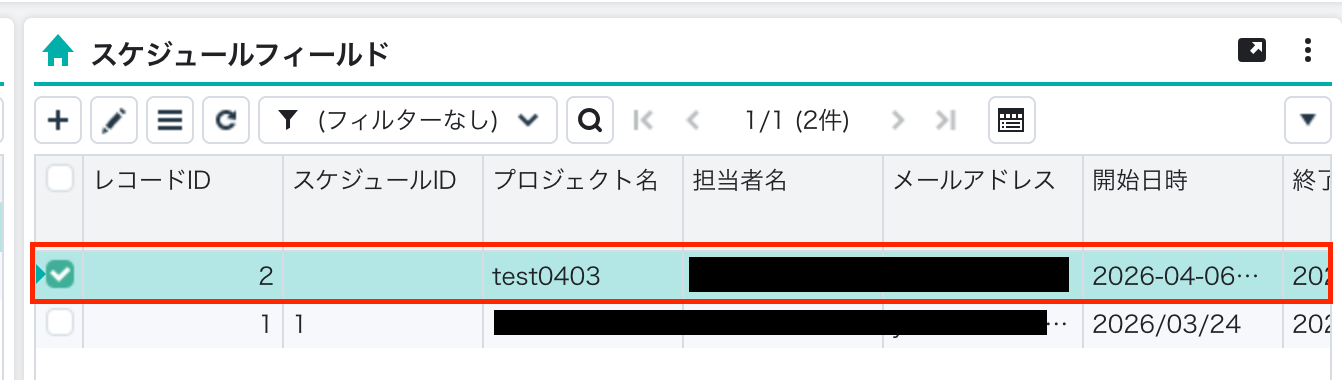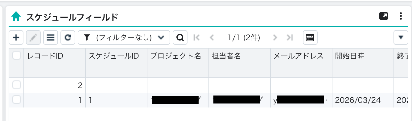 今回は、以下のスケジュールフィールドを用意しました。