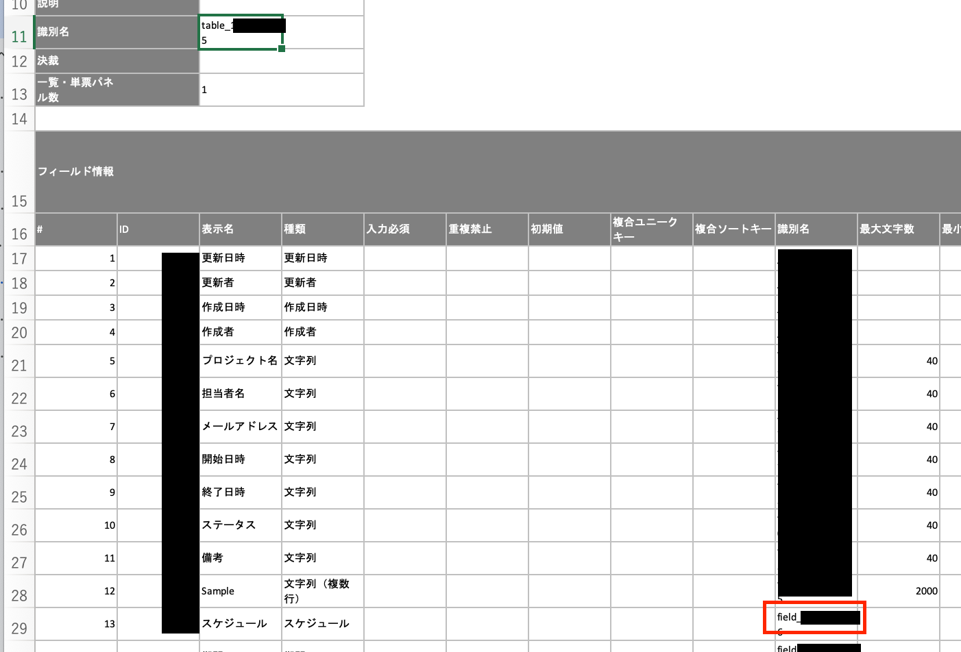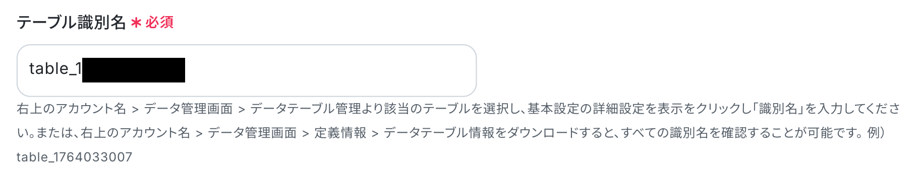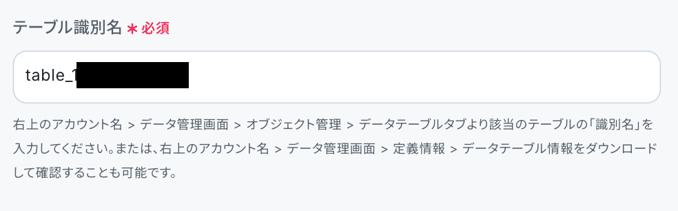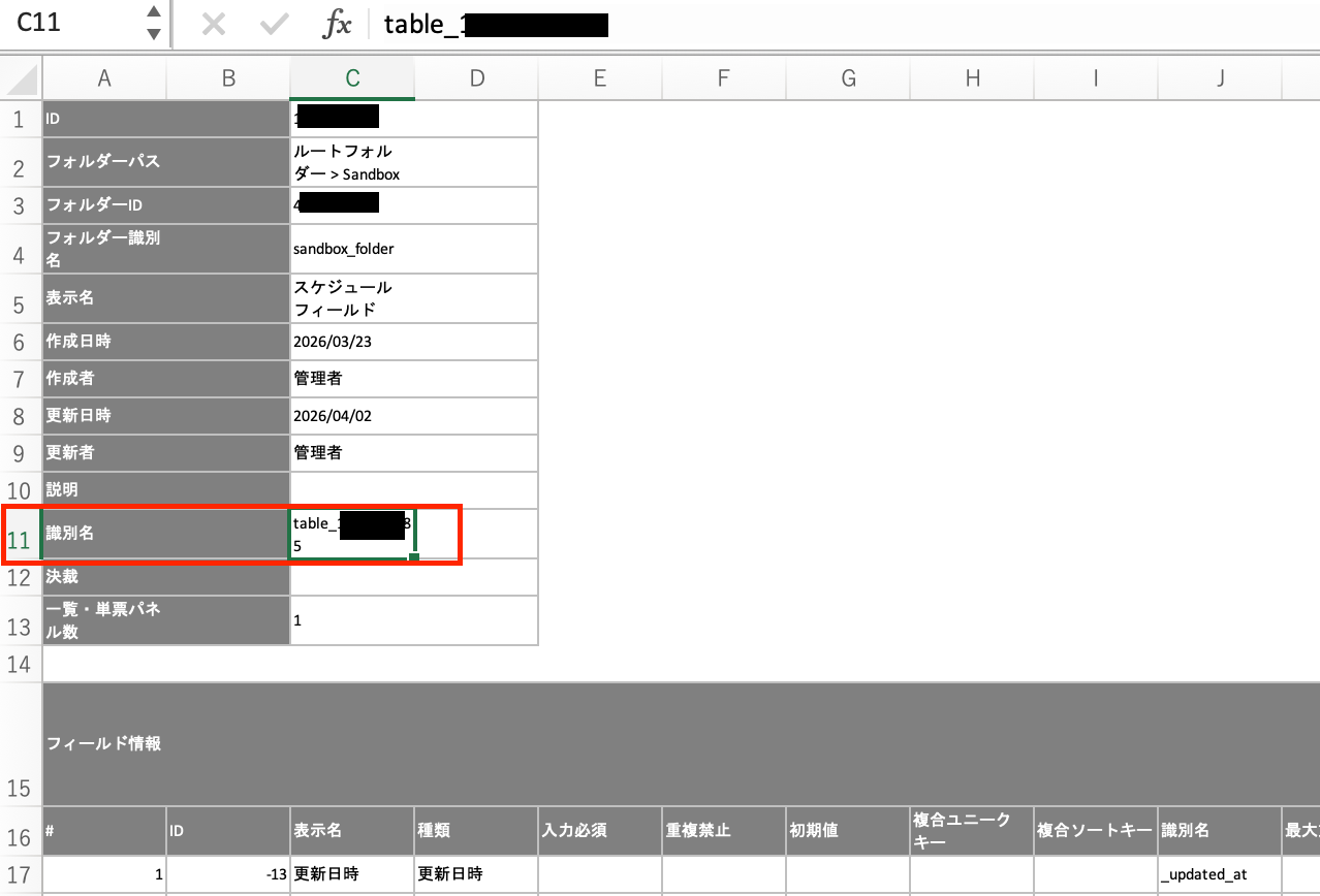 ※以下の赤枠部分が「テーブル識別名」に該当します。