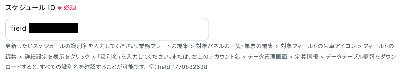 更新したいスケジュールの識別名をコピーしてペーストしてください。