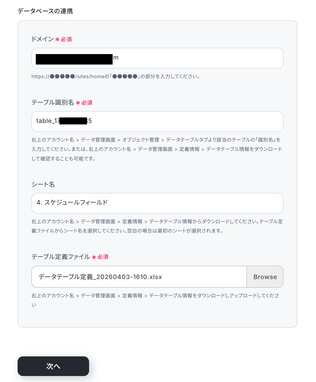 次に、「テーブル識別名」を設定します。