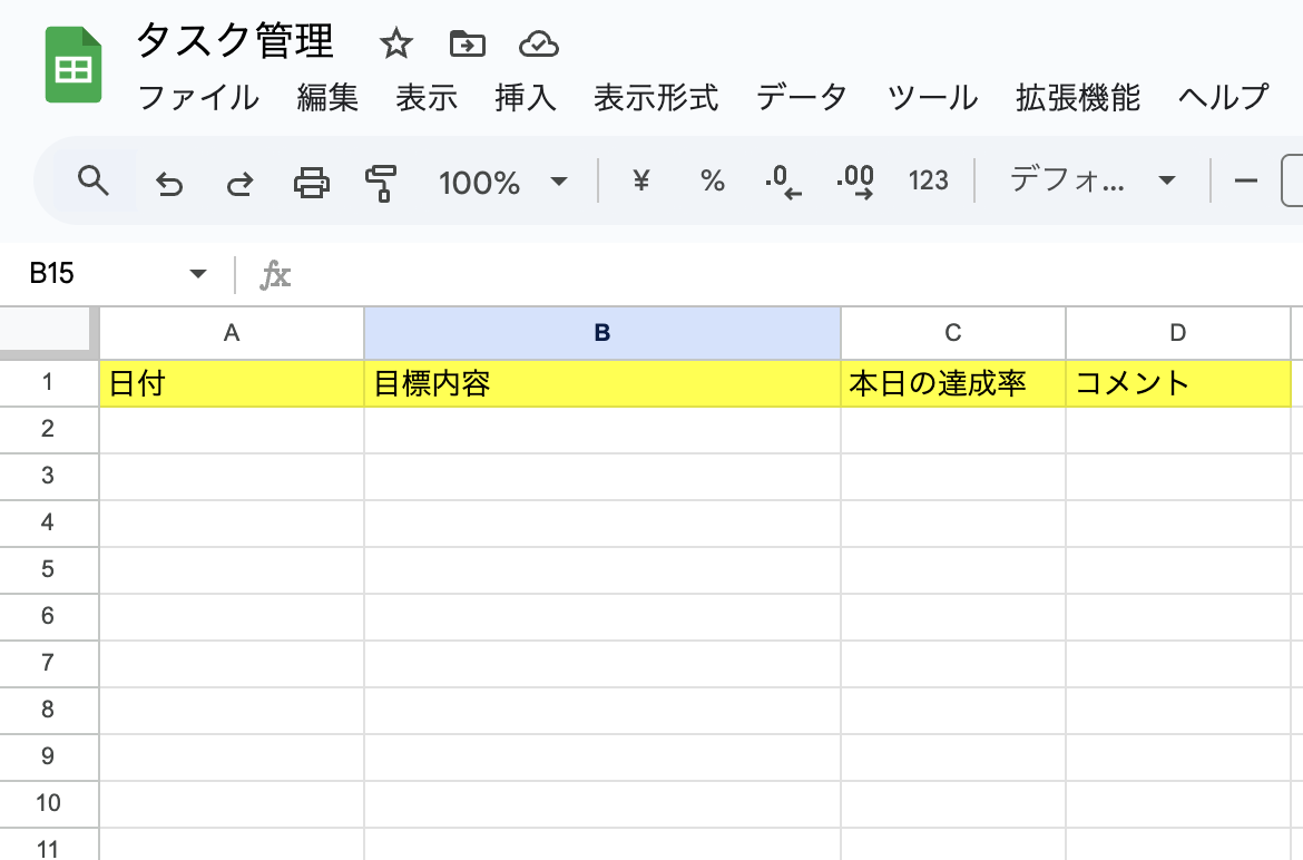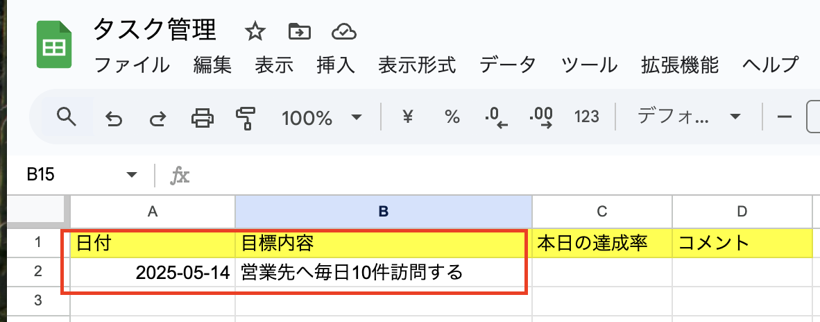ここでは毎日日付と目標を追加したいと思います。