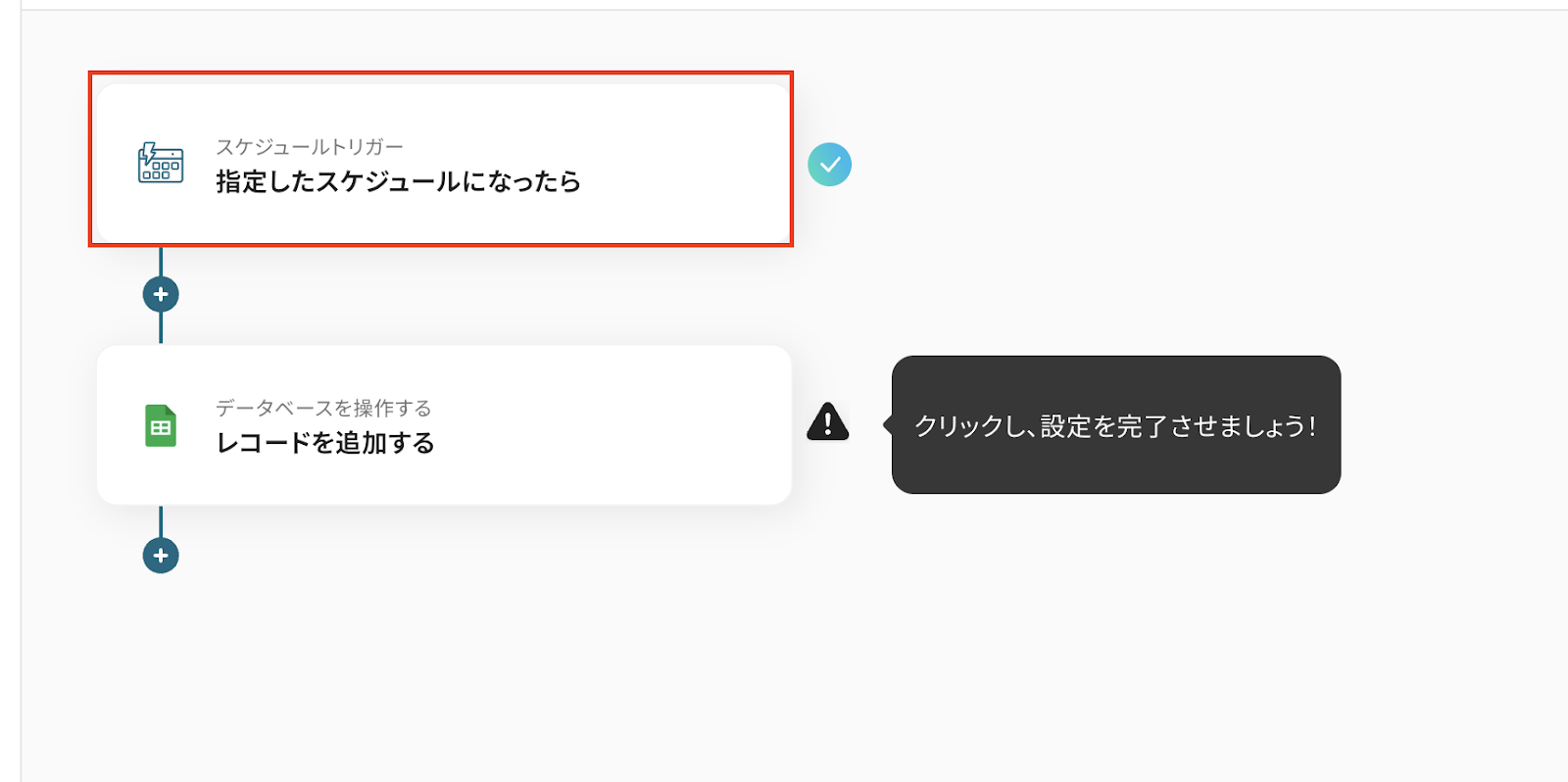 先ほどコピーしたテンプレートの「指定したスケジュールになったら」をクリックしてください。
