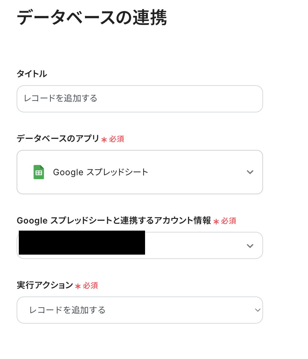 実行アクションは「レコードを追加する」が選択されています。