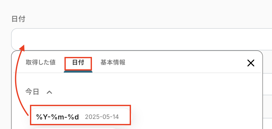 日付は、「日付」の「今日」から選択しましょう。