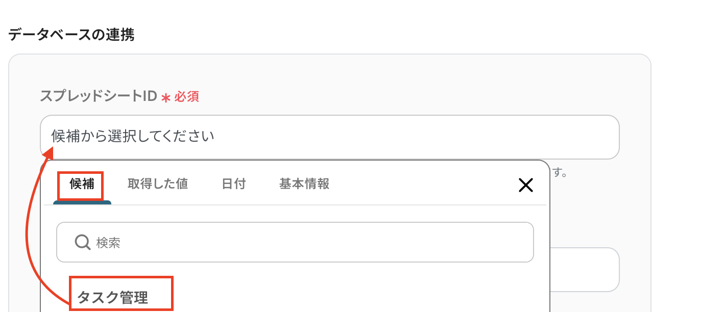 スプレッドシートIDは候補から選択します。