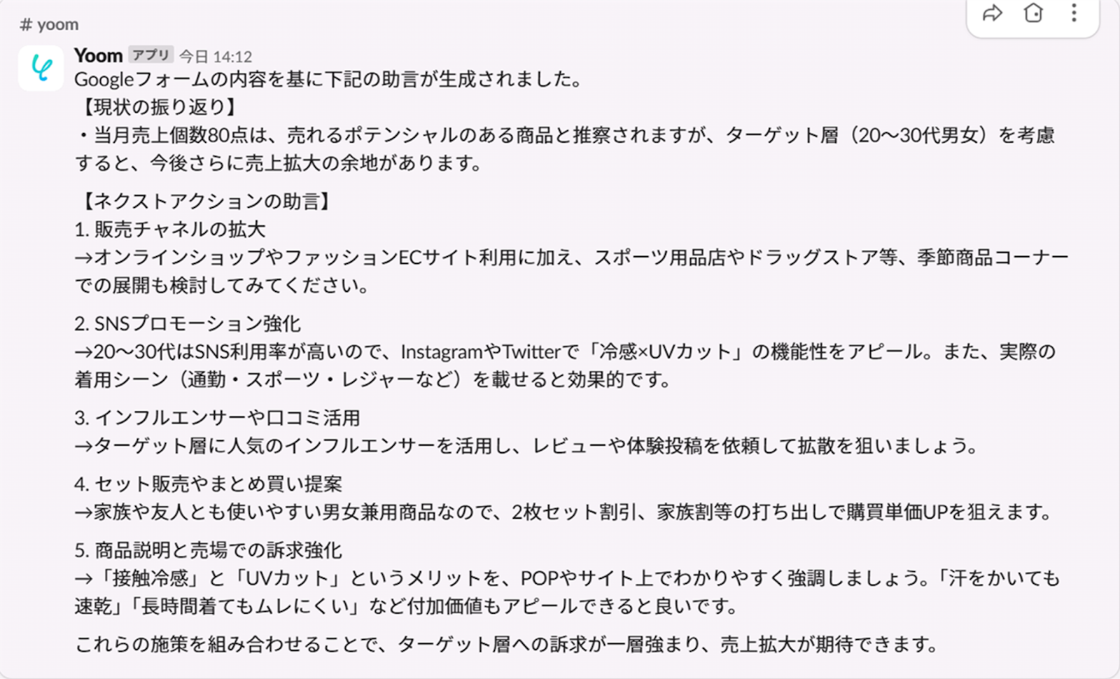 データベースの情報を活用してAIが提案を生成し、チャットツールに通知する