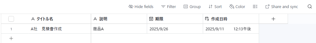 ここまで設定できたらトリガーの動作テストを行うため、Airtableにテスト用のレコードを追加してください。