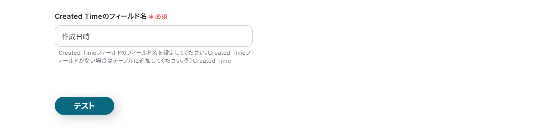 今回は例としてテーブルで「作成日時」と設定したので、以下のように入力しました。