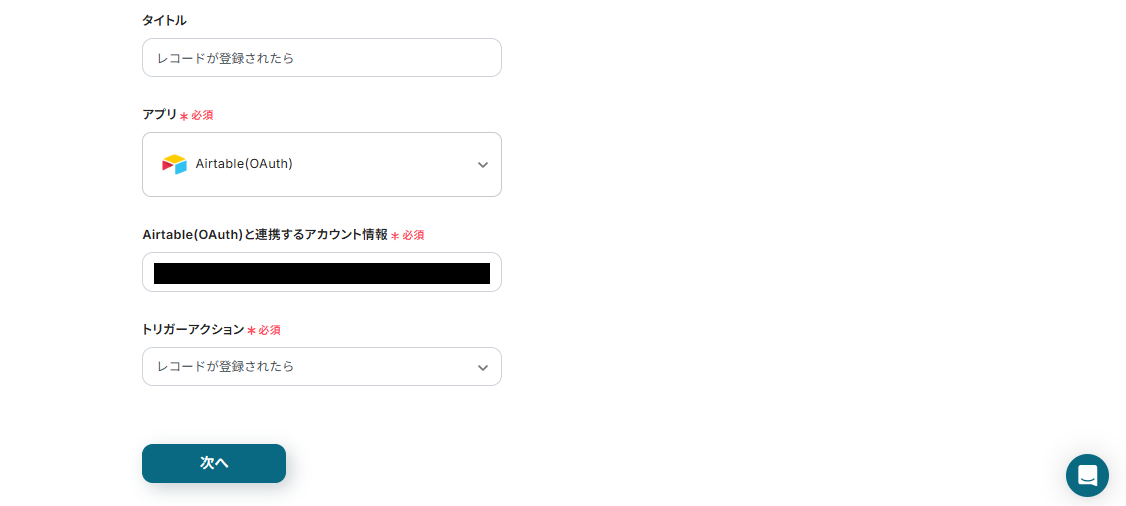 ステップ3:Airtableでレコードが登録されたら起動する、トリガーの設定