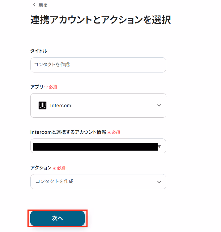 2.連携アカウントとアクションを選択画面が表示されるので、設定内容を確認しましょう。