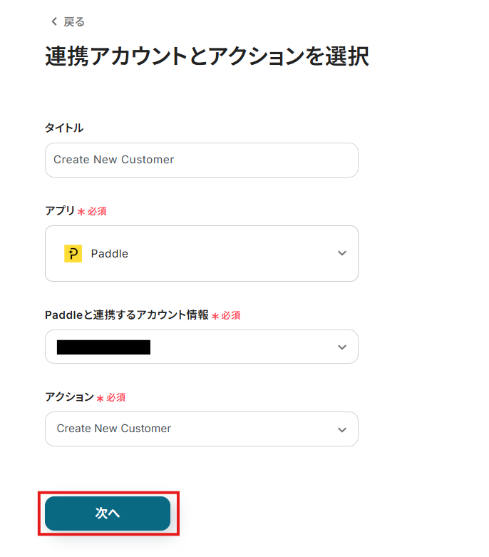 連携するアカウント情報には、ステップ1で連携したアカウント情報が反映されています。
