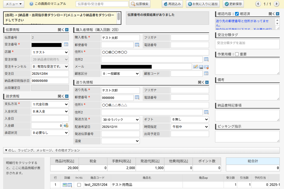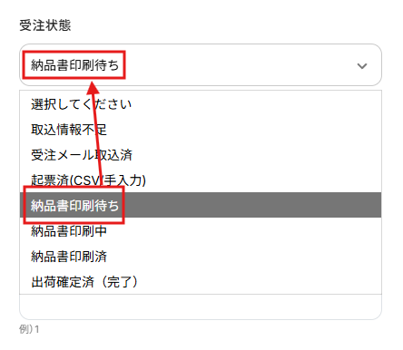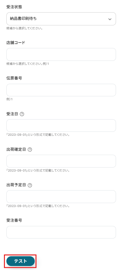 プルダウンに選択肢が表示されるので、受注状態や店舗コードなど検索したい内容を入力しましょう。 特に指定がない項目は空欄でかまいません。
