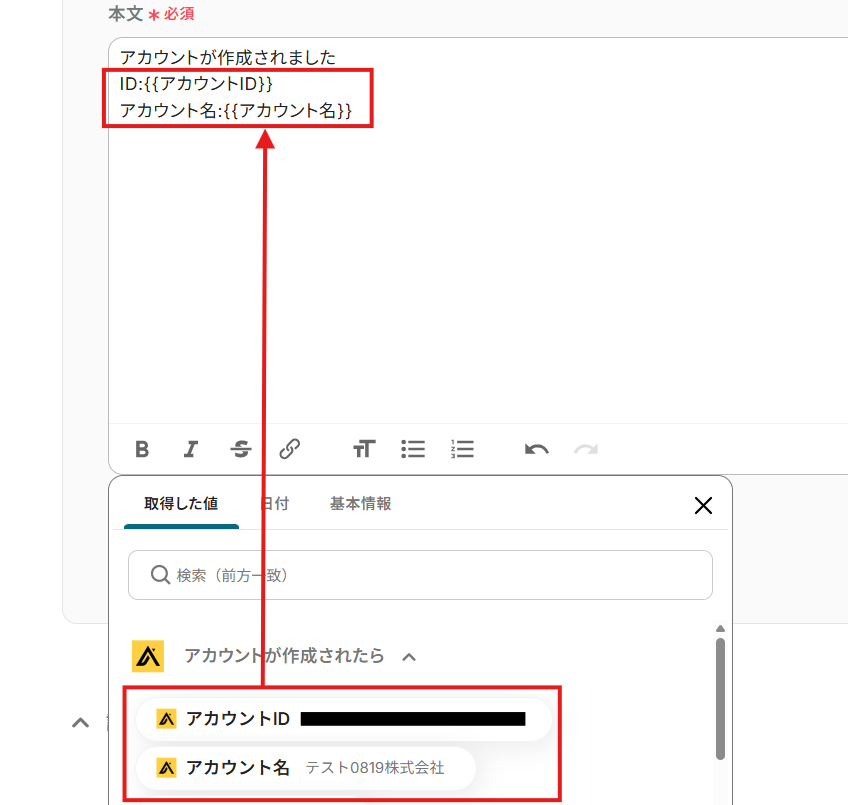 ステップ3でApolloから取得した情報に加え、日付情報などを本文に含めることが可能です。