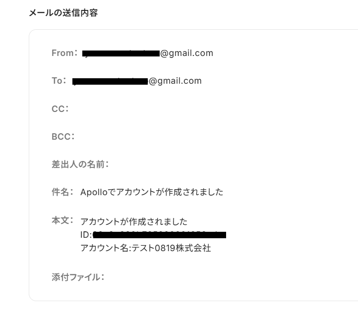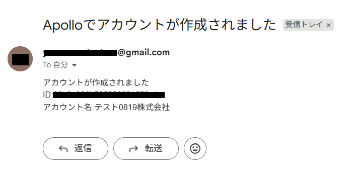 Apolloに新しいアカウントが登録されるたびに、その詳細情報を指定した宛先にGmailで自動通知します。