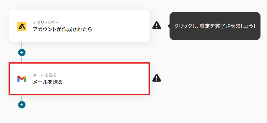 - 最後に、オペレーションでGmailの「メールを送る」アクションを設定し、条件に合致したアカウント情報を指定の宛先に通知します。