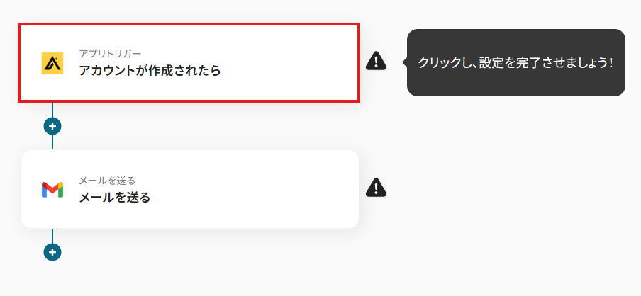 先ほどの画面で「OK」をクリックして、表示された画面のアプリトリガー「アカウントが作成されたら」をクリックしましょう。