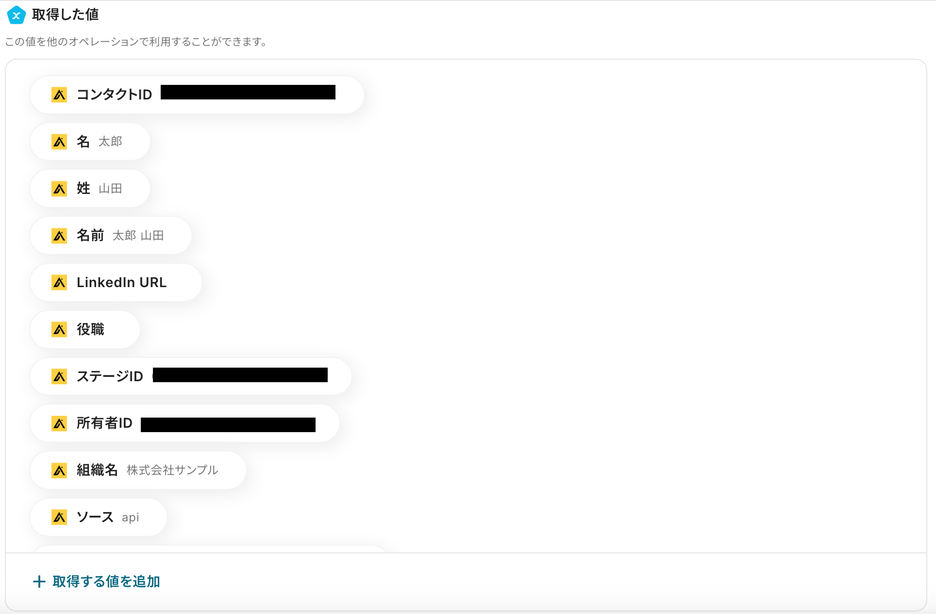 なお、取得した値を活用せず手入力すると、毎回同じ情報が反映されてしまうため注意が必要です。