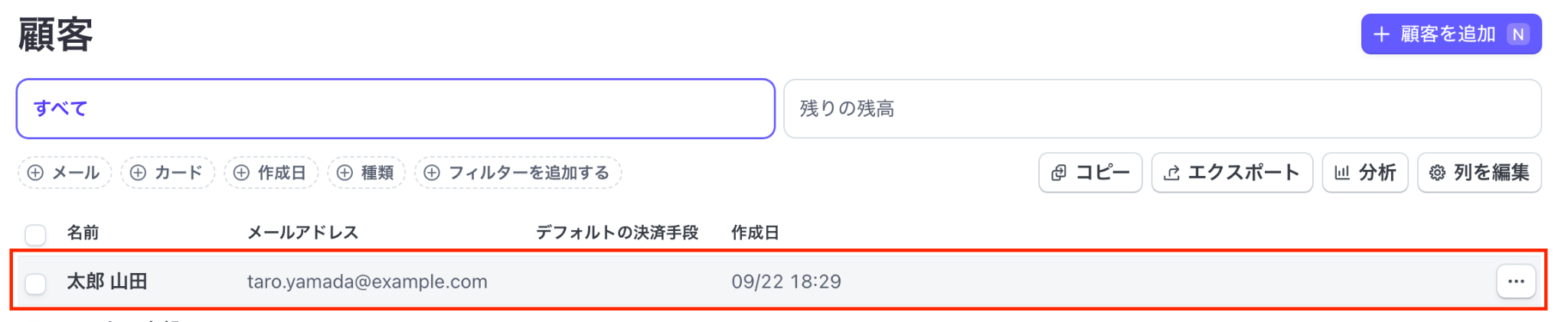 成功すると、取得した値にデータが表示され、Stripeに顧客が作成されます。