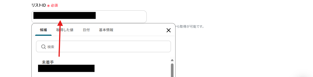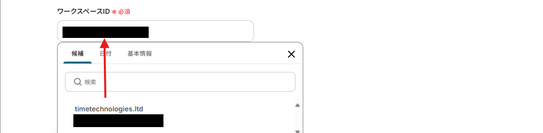 ワークスペースIDとプロジェクトIDは、表示される候補から任意で選択しましょう。
