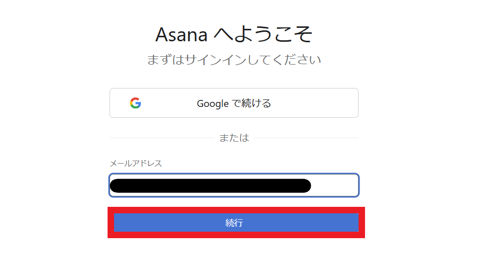 Asanaのログイン画面が表示されるので、連携したいアカウントでログインしましょう。