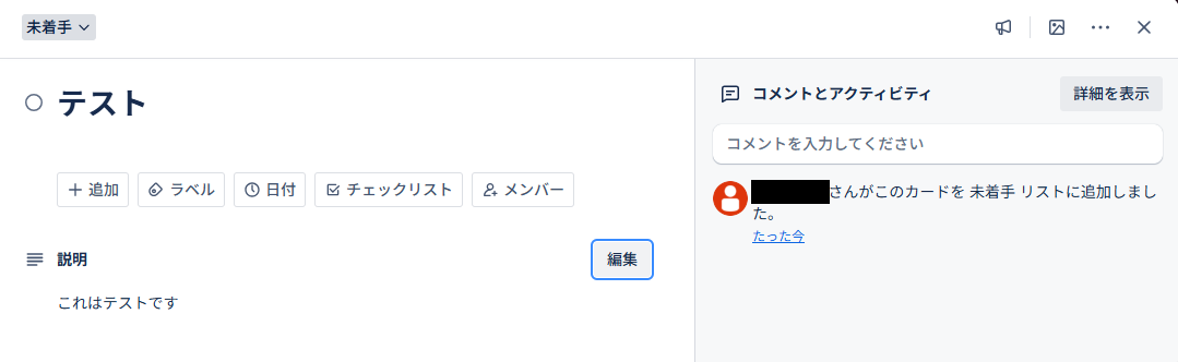 ここまでの設定ができたら、Asanaの画面を開き先ほど設定したプロジェクトにタスクを作成します。(テスト用のため、内容は自由に設定してOKです!)