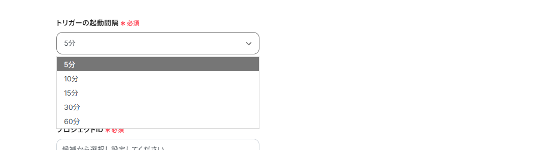 トリガーの起動タイミングは、5分、10分、15分、30分、60分のいずれかで設定できます。