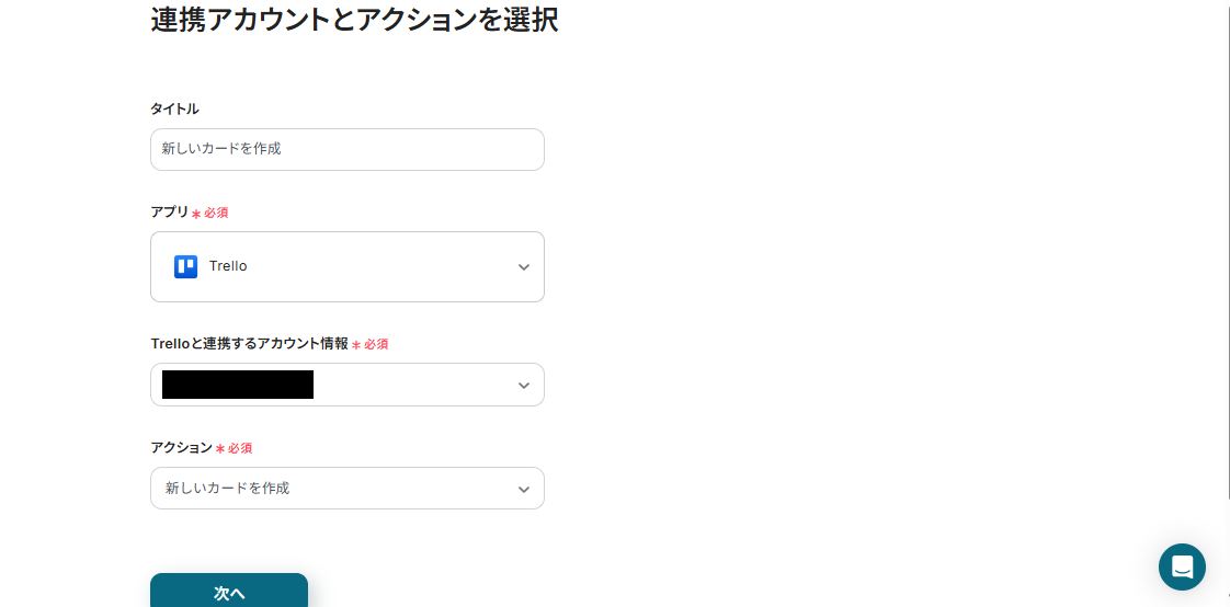 連携するアカウント情報とトリガーアクションは自動的に設定されます。