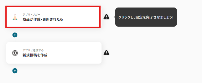 BASEで商品情報が作成・更新されたことを自動化のトリガー(起点)にするための設定を行います。